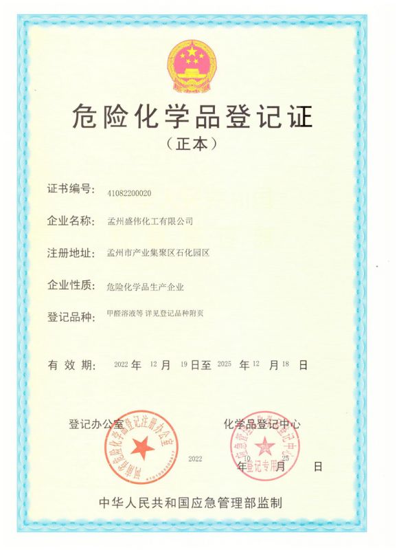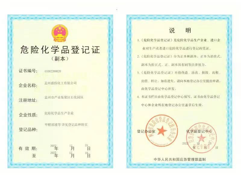 危險化學(xué)品登記證