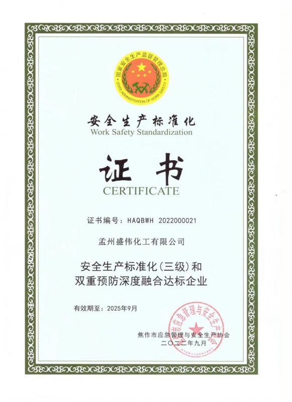 安全生產(chǎn)標準化證書(shū)